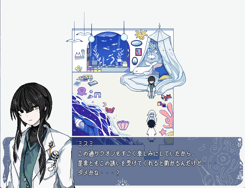 @mokumokusuisei【お知らせ】 🫧MORSOMNIA:0🫧 1月30日(木) 19:00~ Steamにてリリース! エンド数:3つ 予想プレイ時間:2~4時間 1月25日より順次カウントダウンイラストも公開予定です! お楽しみに! 🐳 Steamストアページはこちら store.steampowered.com/app/3002440/MO… pic.x.com/DFf9xLPvzn