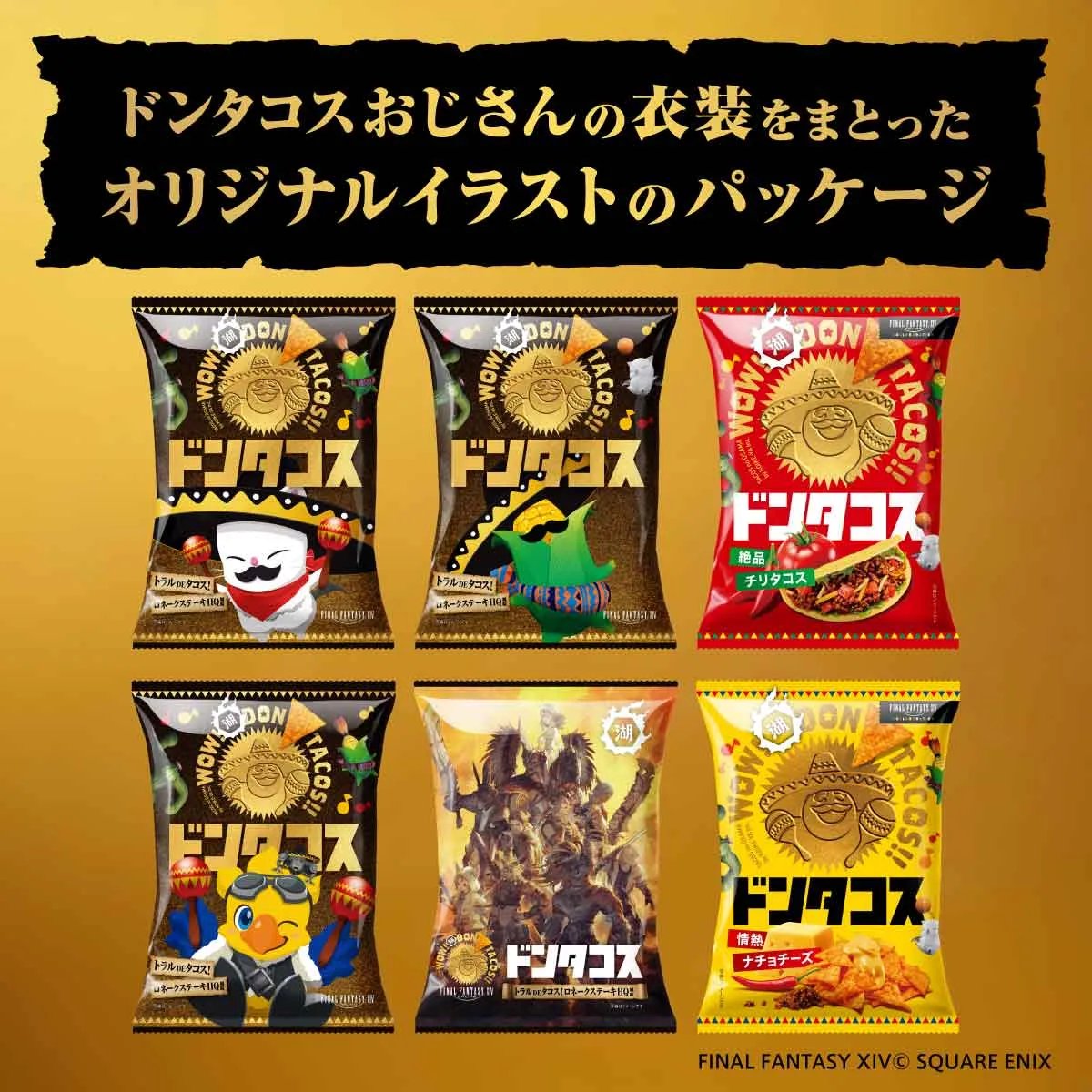 @koikeya_cp🌽ドンタコス30周年🌽 ファイナルファンタジーXIV コラボ限定 #トラルDEタコス 受注開始✨ ●オリジナルパッケージ 1箱に6種全てのデザイン封入! ●トラルDEタコス!ロネークステーキHQ風味 トラル大陸で愛されるタコスの味わいをイメージ! 🌽ほいじゃあ、これ食べてみんしゃい #FF14 #湖池屋