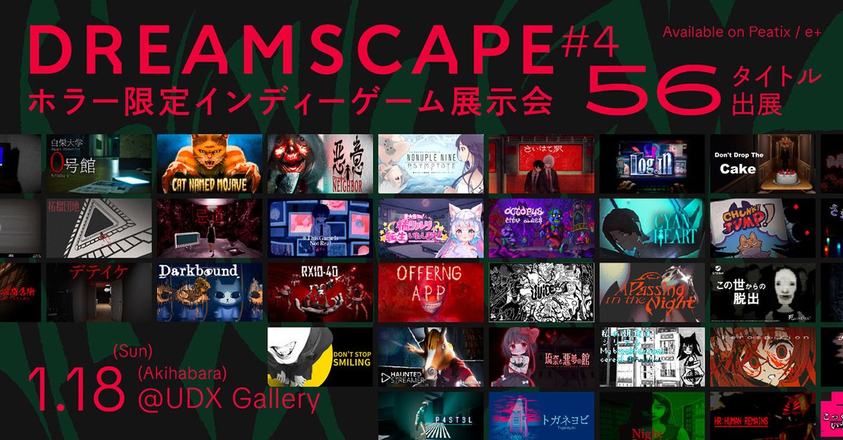 @game_dreamscape【🎟️チケット販売開始のお知らせ🎟️】 2026.1.18(日)に秋葉原UDX Galleryにて開催するホラー限定インディーゲーム展示会 #DREAMSCAPE4 のチケット販売をPeatixにて開始いたしました。 50タイトル以上出展予定です🩸 チケット購入リンク(Peatix)はツリーからご確認ください!👇 --------------- pic.x.com/u2FmH515oa