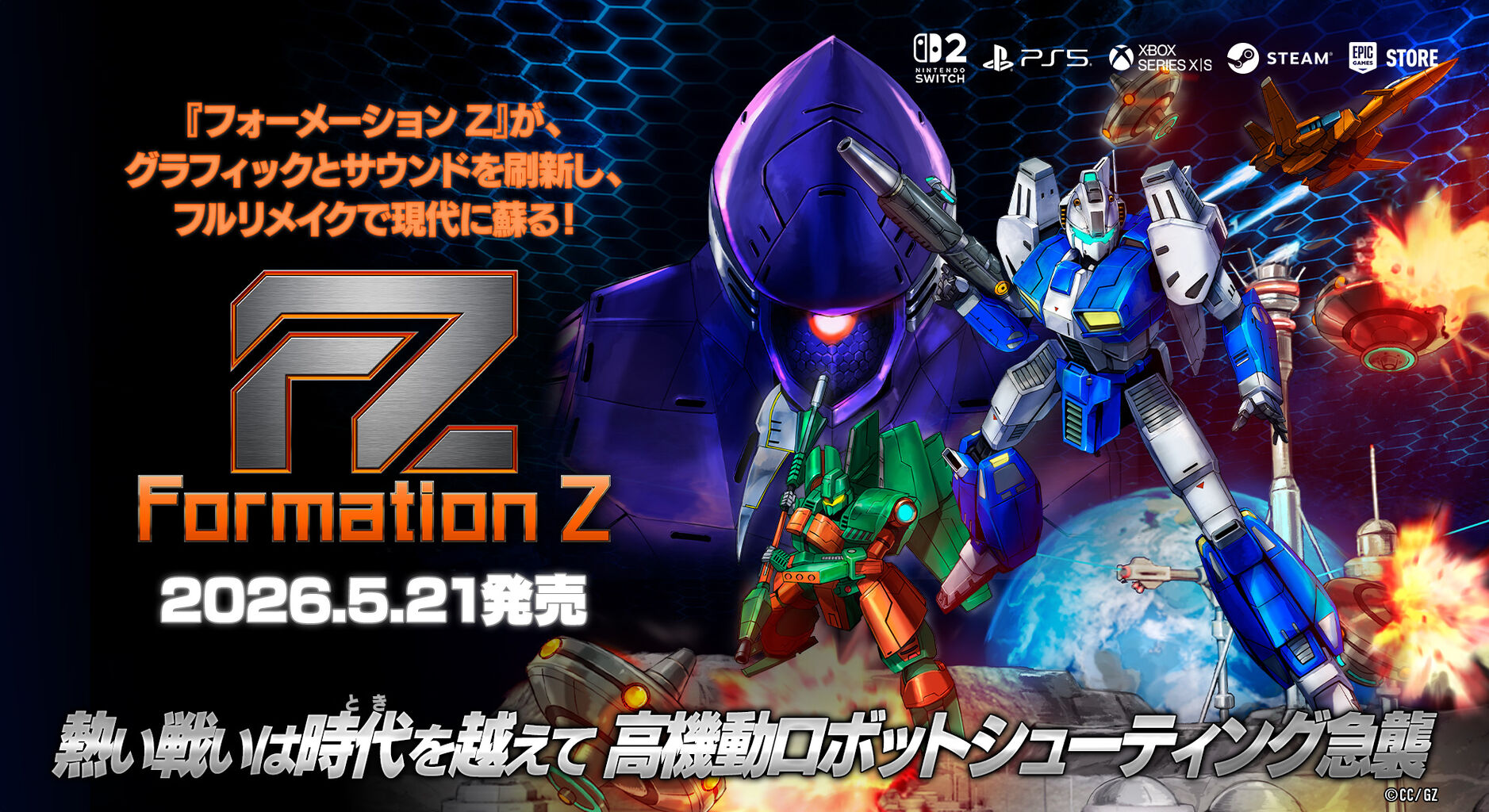 | 『フォーメーションZ』(フォーメーションゼット、英題:Aeroboto)は、ジャレコが企画、カワ電子技研が開発した、1984年より稼動開始したアーケードゲーム。 2026年5月21日にフルリメイク作品となる『FZ: Formation Z』が本作のIPを所有するシティコネクションよりNintendo… 21キロバイト (1,850 語) - 2026年1月28日 (水) 23:55 |